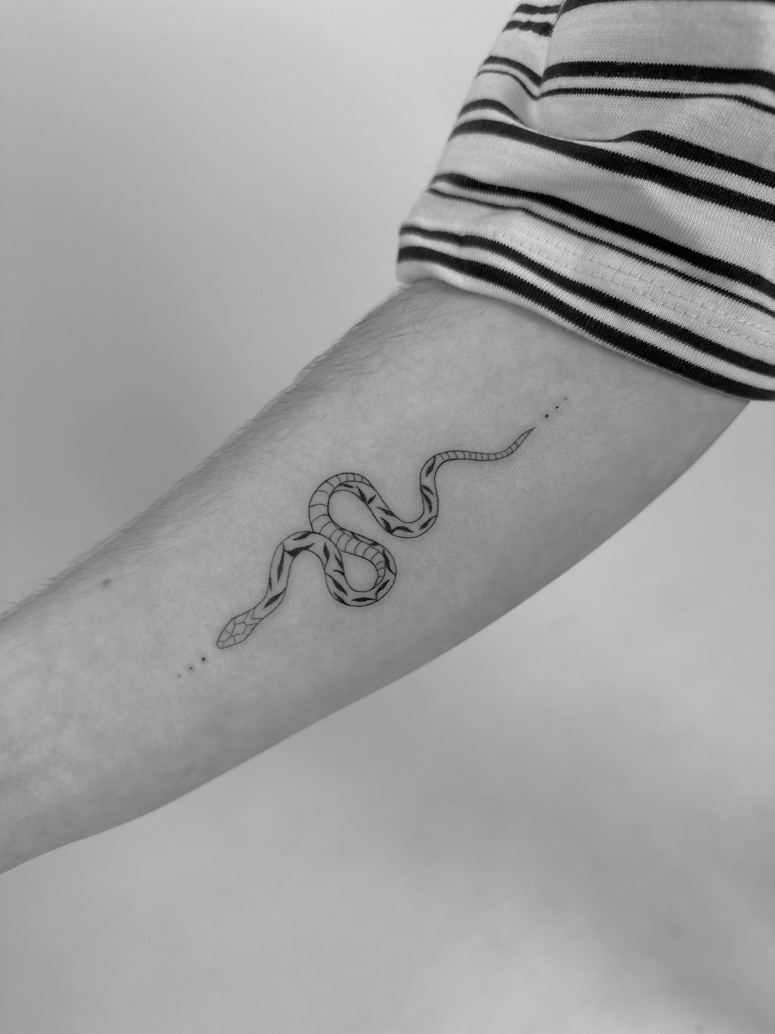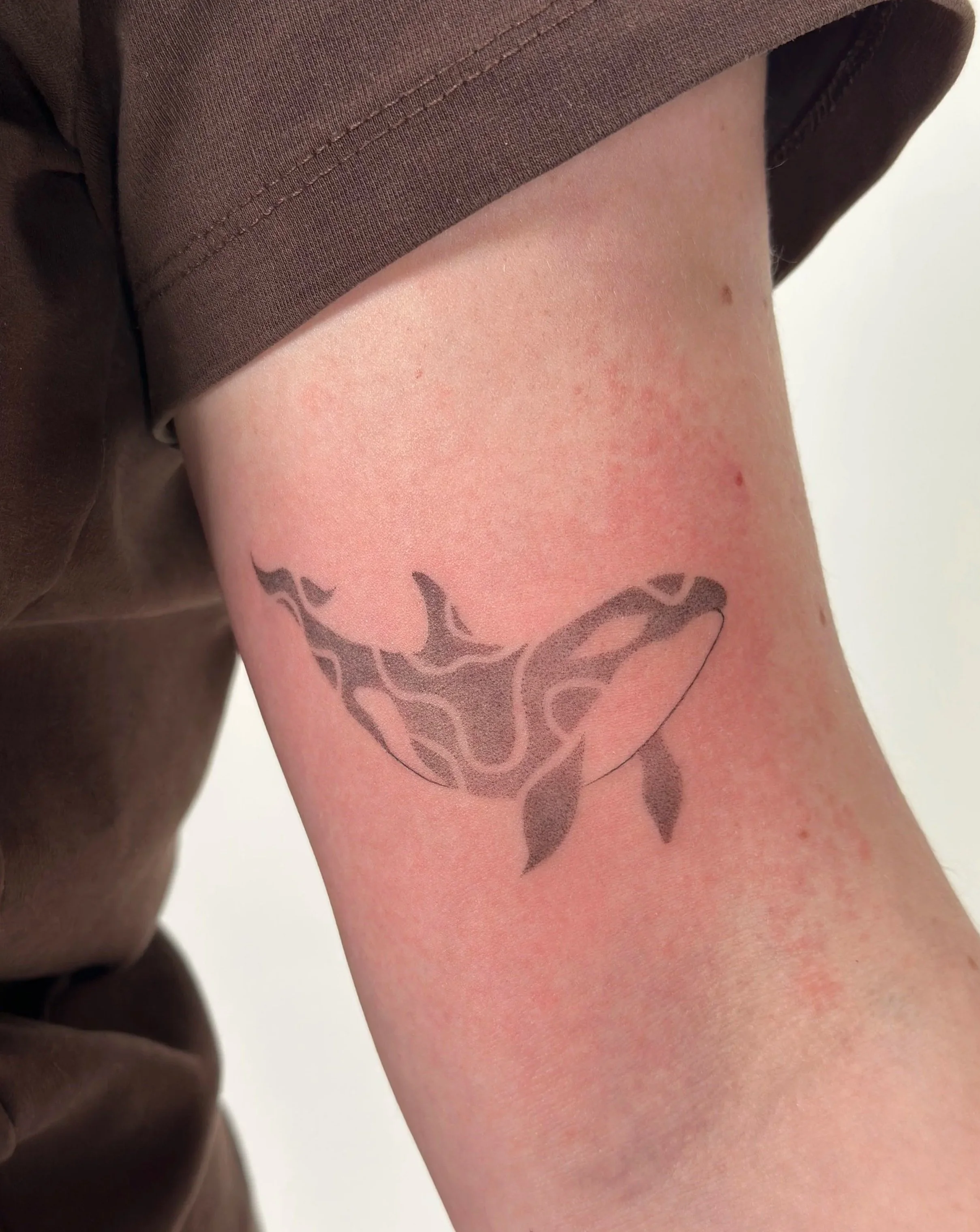 With my background in graphic design, I approach tattooing the same way I design: seeking clean lines and pure forms. Like a logo, a tattoo should stand strong on its own — simple, balanced, and made to flow with the body’s shape.